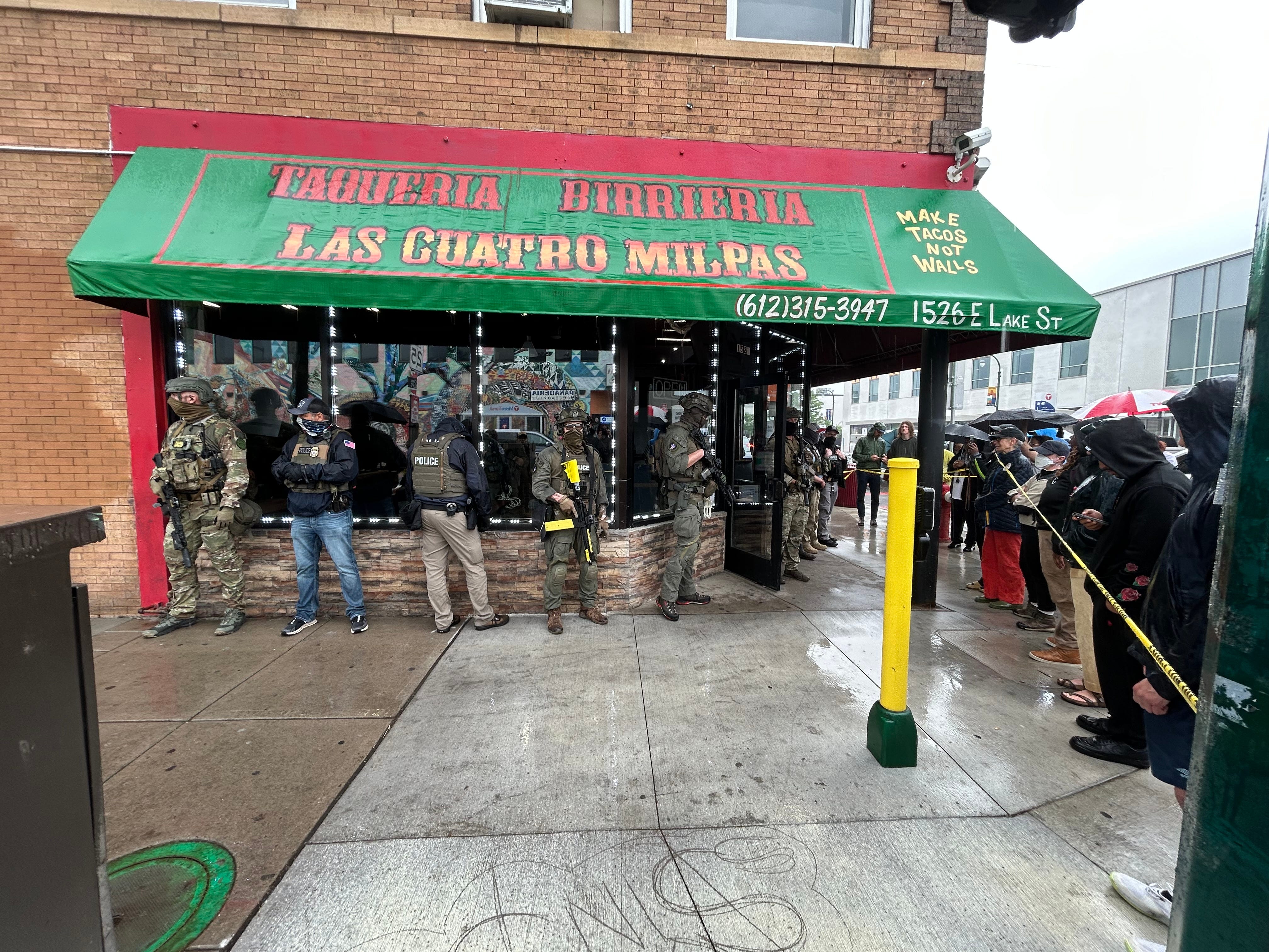 I’ve experienced the fervor of righteous anti-ICE rage myself. On a rainy morning in June, approximately 50 ICE and other federal officers reared their ugly heads at a beloved taco shop in South Minneapolis. An alert went out that ICE had occupied the inside of the restaurant and over a hundred protestors showed up to stop a potential abduction. A tinted black federal van began pulling into an alley behind the restaurant, seemingly to retrieve whoever was inside, and protestors responded by blocking the van. Federal agents threw one person to the ground and arrested her and later deployed pepper spray to disperse the crowd.